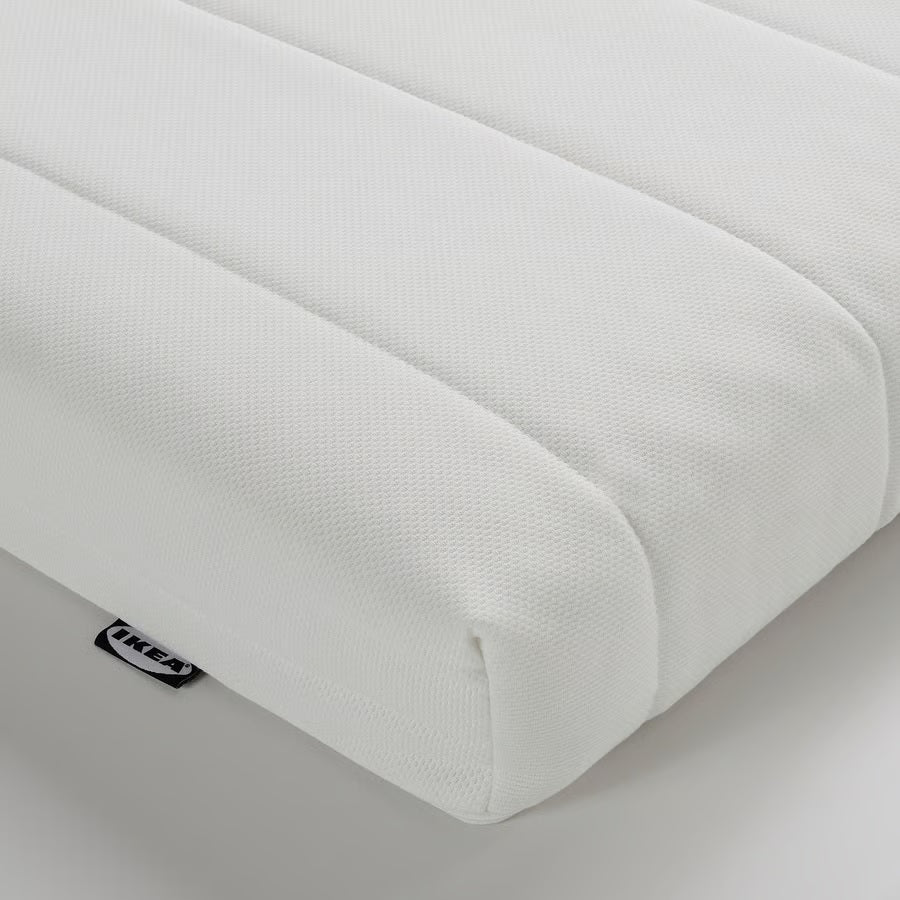 The daybed is combined with two AFJALL foam mattresses, 80x200. They are placed on top of each other when you use the daybed as a single bed, and next to each other when you use it as a double bed.