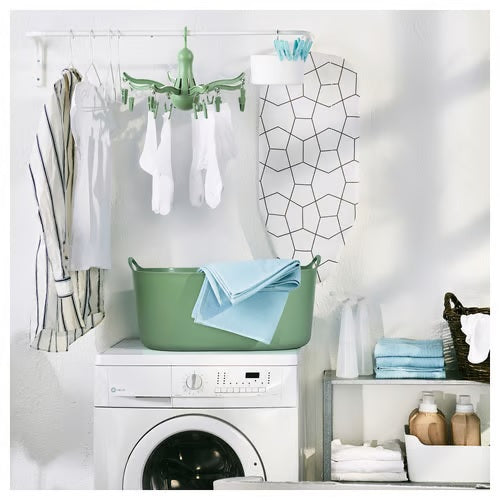 A clever hanging dryer with 16 clothes pegs for unruly socks, underwear, infants’ clothes and other smaller items. Easy to hang just about anywhere and folds to take up little space when not in use.