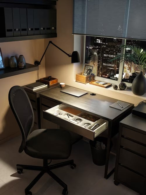 You can extend your work surface by combining desks and drawer units. All desks and drawer units in the MICKE series are the same height.
